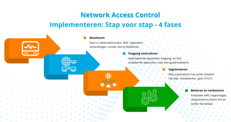 De implementatie van NAC gaat stapsgewijs en met beleid. Plan de uitrol gesegmenteerd uit.